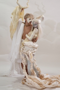 17 May 2025Since May 17, 2025, a new exhibition will be inaugurated in the Rotonda Hall of the "I.L. Caragiale" National Theatre: Apollo & Daphne is an unconventional artistic experiment of the Fashion Department of the National University of Arts in Bucharest, under the coordination of PhD Prof. Unda Popp and PhD assistant Prof. Andreea Roxana Stoian. Taking Bernini's Baroque masterpiece Apollo and Daphne as their starting point, the students were invited to explore the issue of metamorphosis with maximum creativity and subjectivity. Working in different ways, the undergraduates created their outfits using recyclable materials: paper, cardboard, textile scraps and organic elements from plants, while the masters’ students translated their ideas into a vision closer to the general idea of clothing. On May 27, 2025, at 18.00, we invite you in the Rotonda of the Small Hall of the NTB, to meet young creators, to watch the short film "Apollo & Daphne" and to witness a unique presentation of edible costumes (!) The opening will be addressed by PhD Prof. Ion Bogdan Lefter and drd. Marian Palie. The exhibition, which will be open until June 6, 2025, is one of the satellite events of Romanian Design Week Go! Free entrance, visiting hours daily from 14.00 - 18.00, except public holidays. Translated by Andreea Codrea-Boeriu