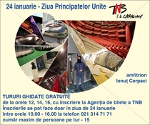 24 January 2022On the Day of the Union of the Romanian Principalities, 24 January 2022, the "I.L. Caragiale" National Theatre offers free guided tours at 12.00, 2.00 p.m. and 4.00 p.m. (subject to availability, in order of registration). Registration can be made on 21, 22 and 23 January 2022, between 10.00 a.m. and 4.00 p.m., by calling 021 314.71.71 (NTB Ticket Office). The maximum number of visitors for 1 tour is 15 people. Meeting point with Ionuț Corpaci for guided tours: in front of the Box Office in the foyer of the NTB "Ion Caramitru" Hall. Access by green card only. Masks must be worn throughout the visit. As of 6.00 p.m., spectators will be greeted at the entrance to the Ion Caramitru Hall by the three colours of the national flag projected on the façade of the building. NTB-TV, NTB's YouTube channel, invites you to watch on your tablets, phones or at home on TV, starting at 6:00 p.m., a lecture given by Bogdan Aurescu in 2013, at the National Theatre of Bucharest, entitled National interest and the topicality of sovereignty. Romania's foreign policy and the winner's paradigm. Is the concept of national interest still relevant in a deeply globalised and acutely interdependent world? What is the national interest? Is state sovereignty still necessary and, if so, what does it look like today? What is the national interest for Romania from a foreign policy perspective? What are the means whereby Romania's national interest, from a foreign policy perspective, can be better and more effectively achieved? Can we use the lessons learnt so far from the major foreign policy issues that Romania has successfully resolved? Can we talk about - or build - a "winner's paradigm" in Romania's foreign policy? The conference "The national interest and the topicality of sovereignty: Romania's foreign policy and the winner's paradigm" will try to give a reasoned answer to these questions. As far as performances are concerned, the "I.L. Caragiale" National Theatre of Bucharest is waiting for you to cross its doorstep on the Holiday, too! The NTB programme is available here. Translated by Simona Nichiteanu