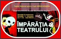 14 October 2018On 24 September and 8 October 2016, two events announcing the new season for children, at NTB! The Empire of Theatre awaits you! The story goes that in the year 6102, the Theatre Emperor shall descend in downtown Bucharest. Together with his cortege, the Emperor shall “rule” the place and transform it into a realm where Theatre will prevail. We thought that we have to wait for a long time. Upon a closer look, we realised that there is a mistake in the wording of the story. We switched the year, looking at it in the mirror and realised that 6102 was in fact 2016. The excitement of the fact that we had no more time to prepare the welcome ceremony made us change our minds and ask the Magician of Stories and his assistants for help. We wrote to him and the answer came quickly: I can, I am a Magician! Then, he got in touch with the Theatre Emperor and thus we could find out about the entire development of the event. On Saturday, 24 September 2016 and Saturday, 8 October 2016, as of 11.00, in the Media Hall, we invite you to two events announcing the opening of the season for the Abracadabra National Theatre for Children. Dear Children, you shall enter the gate of the Empire of Theatre, you shall cross the Enchanted Forest behind the Scenes - where Prince Echo awaits you with a great trial. In order to reach the Stage Empress, you need to get acquainted with the Magician of Movement, but also with Princess Sweet-Talk and Prince Chime. Many surprises await you in the Theatre Empire. Do not forget to come in disguise, as you shall be the protagonists of these events. If the Theatre Emperor cannot be present, we shall elect among you an Emperor and an Empress, which we shall baptise The Curtain. The new season of the National Theatre for Children invites you to become Fairytale Heroes in the Empire of Theatre! Translated by Simona Nichiteanu