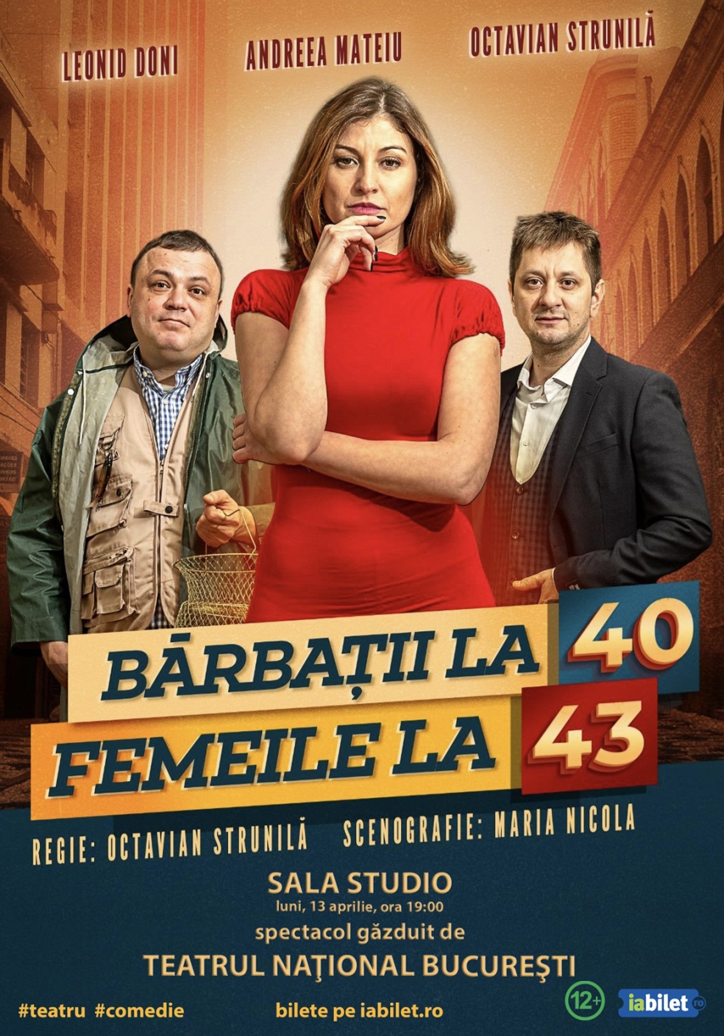 Să renunți la facultate pentru cariera soțului și apoi să constați că te înșală, să te prinda criza de la 40 cu un milion de euro în cont sau să fii părăsit pentru că esti un om prea bun la suflet, sunt problemele cu care se confruntă personajele noastre surprinse în trei tablouri: la 29, la 40 si apoi la 43 de ani.