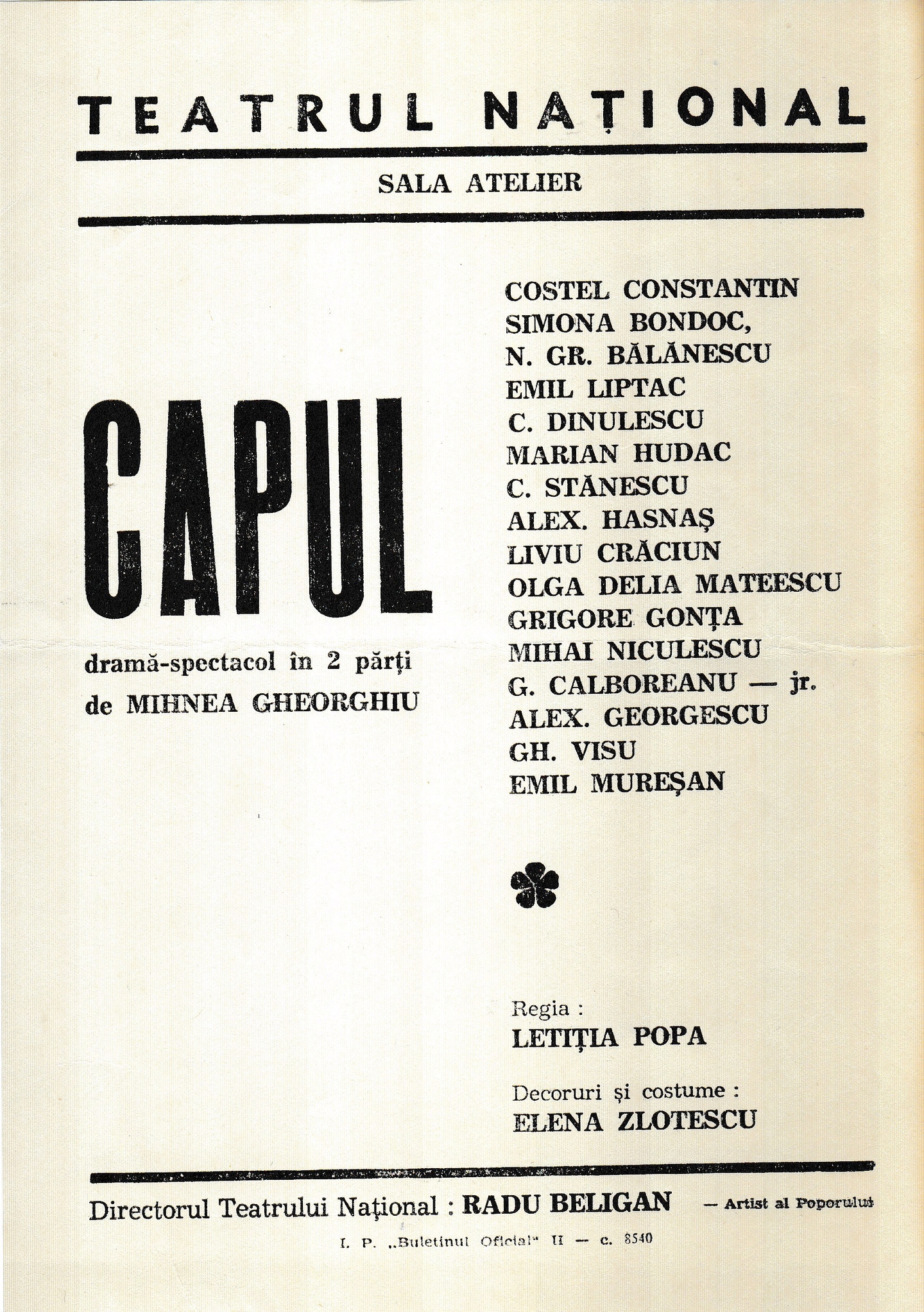 | Hamlet, Andrei Cardinalul: | Gheorghe Visu | O jupâniță, Sufragiul, Kiraly, Cârlig: | Grigore Gonţa |