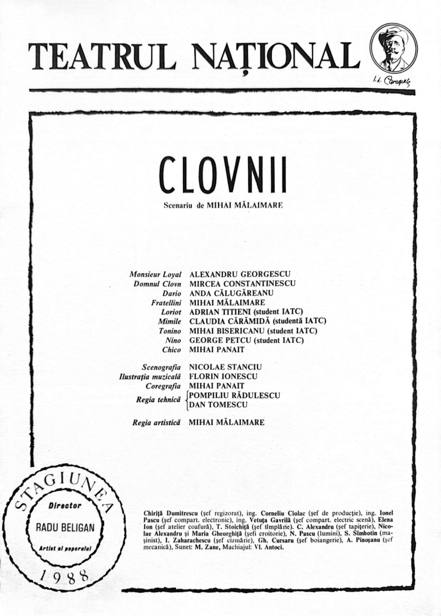 | Monsieur Loyal: | Alexandru Georgescu | Domnul Clovn: | Mircea Constantinescu |