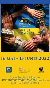 12 Iunie 2022Spectacole lectură prezentate în cadrul Campaniei Artiști români pentru Artiști ucraineni - UNITER 1. Copiii noștri de Natalia Blok, regia Vlad Massaci, cu Maia Morgenstern, Teatrul Național „I.L. Caragiale” din București prin Centrul de Cercetare și Creație Teatrală „Ion Sava” 2. Sindromul supraviețuitorului de Andrii Bondarenko, regia Vlad Massaci, cu Marius Bodochi, Teatrul Național „I.L. Caragiale” din București prin Centrul de Cercetare și Creație Teatrală „Ion Sava” 3. Dicționar de emoții pe timp de război de Elena Astasieva, regia Claudiu Goga, cu Emilia Popescu, Teatrul Național „I.L. Caragiale” din București prin Centrul de Cercetare și Creație Teatrală „Ion Sava”