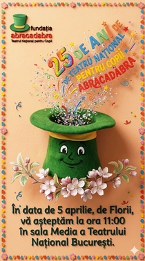 Spectacolul aniversar al Teatrului Naţional pentru copii Abracadabra va avea loc pe 5 aprilie 2026, de la ora 11.oo, în Sala Media. Dar toată luna aprilie, şi începând chiar din ultima duminică a lunii martie, copiii vor fi invitaţi la aniversarea Teatrului Naţional pentru Copii Abracadabra. Spiritul sărbătorii va fi prezent în fiecare din aceste spectacole.